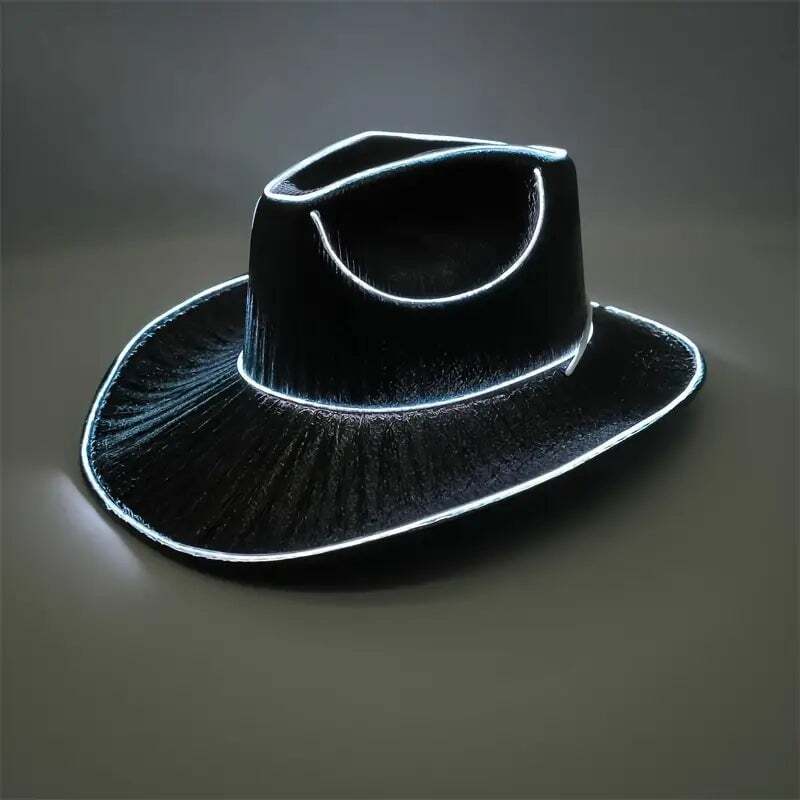 Design: This illuminated cowboy hat comes with a drawstring that can be tightened under the chin for a perfect fit.