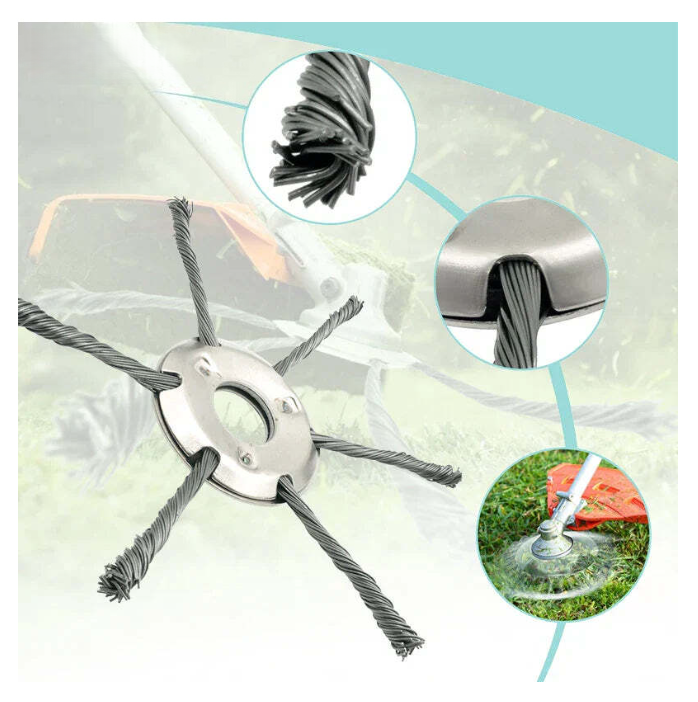 Introducing the SteelWhip Weed Head: a robust solution designed to tackle the most stubborn weeds and moss with ease. This steel-wire-wheel head is a marvel in lawn maintenance, gliding through overgrowths and leaving behind a yard that’s neat and tidy.